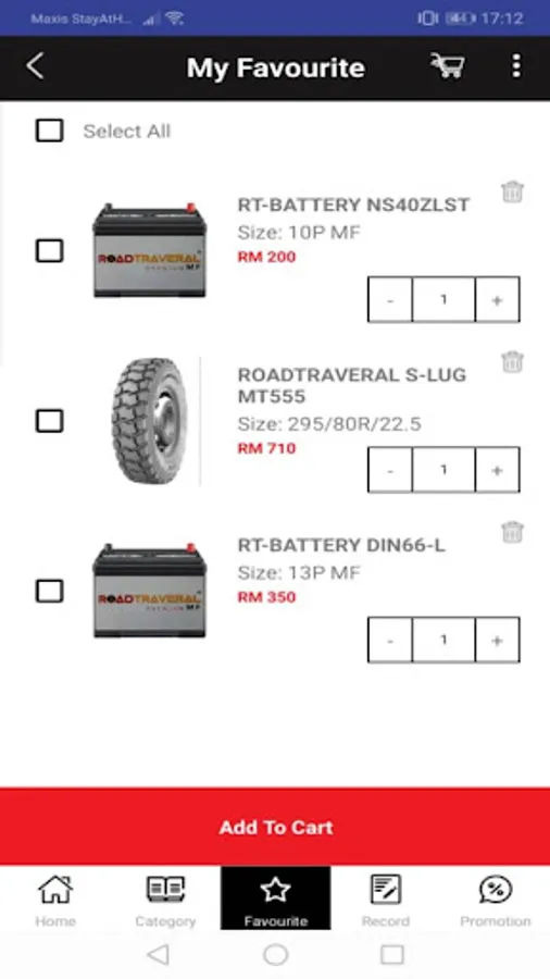 RoadTraveral app is built for the reorder workflow common in B2B, allowing merchant or dealer to quickly make orders by using product favorite list.