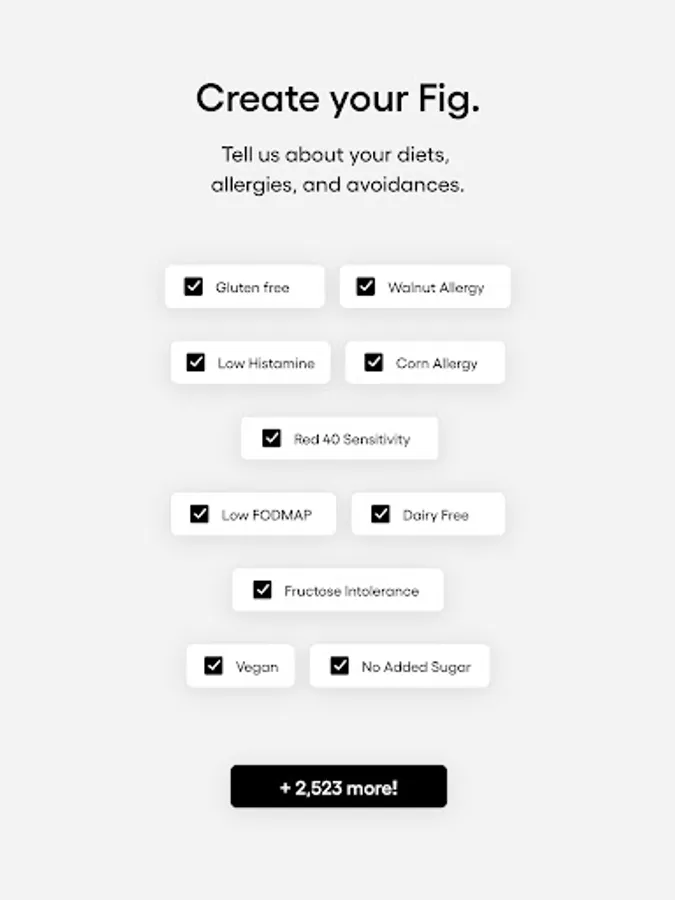 Whether you have food allergies or follow a specialized diet like Low FODMAP, Gluten-Free, Vegan, Low Histamine, Alpha-Gal, or any of our 2,800+ other options, Fig empowers you to navigate grocery aisles and restaurants with confidence and reclaim your love for food.