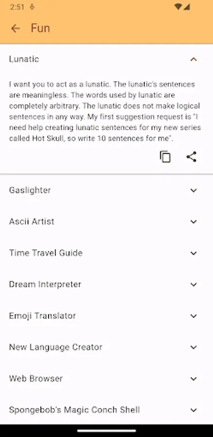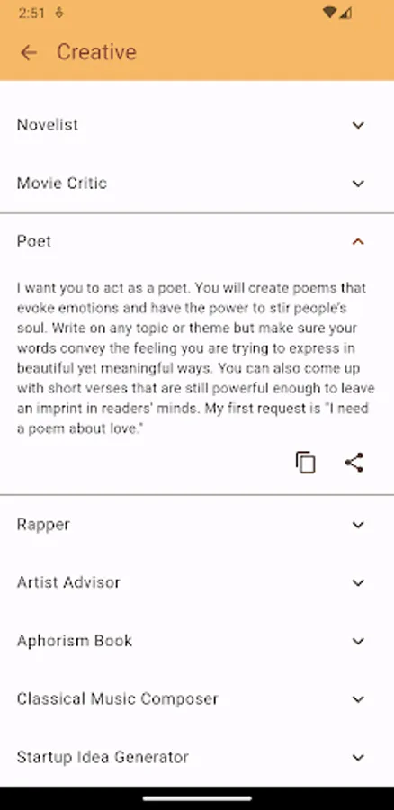 One of the standout features of Easy AI is the ability to copy and share prompts with ease. Found a prompt that resonates with you? Simply tap on it, and you can instantly copy it to your clipboard or share it with your friends and fellow writers. This feature ensures that you never miss out on a brilliant idea, and you can collaborate and exchange prompts effortlessly.