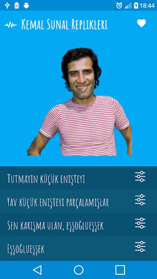 Download the app to listen to fun lines from Kemal Sunal, Cow Shaban, Hababam Class, Milk Brothers, Tosun Pasha, The King of Trash, and many other funny movies.