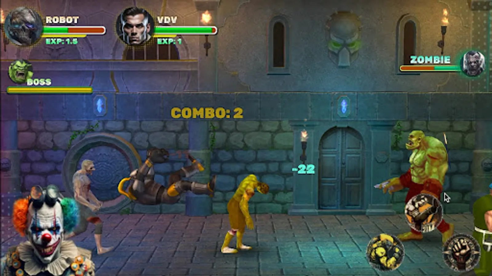 Fighting Z - hardcore fight (Beat-up - Beat 'em up). A game with exciting battles, it's worth trying a boss battle with friends. A fight in the arena between various fighters and the final boss. You can play in a team of up to 4 players.