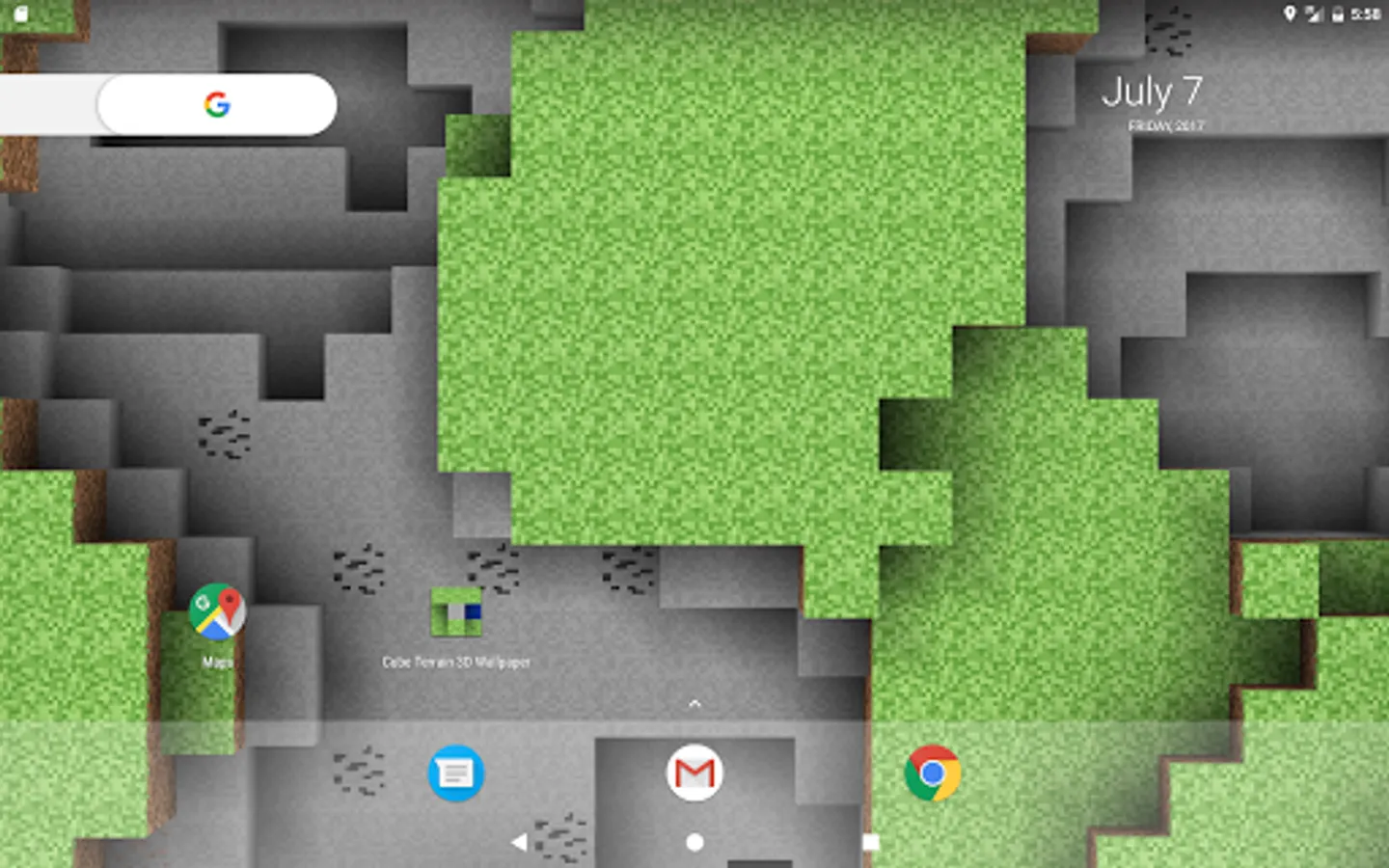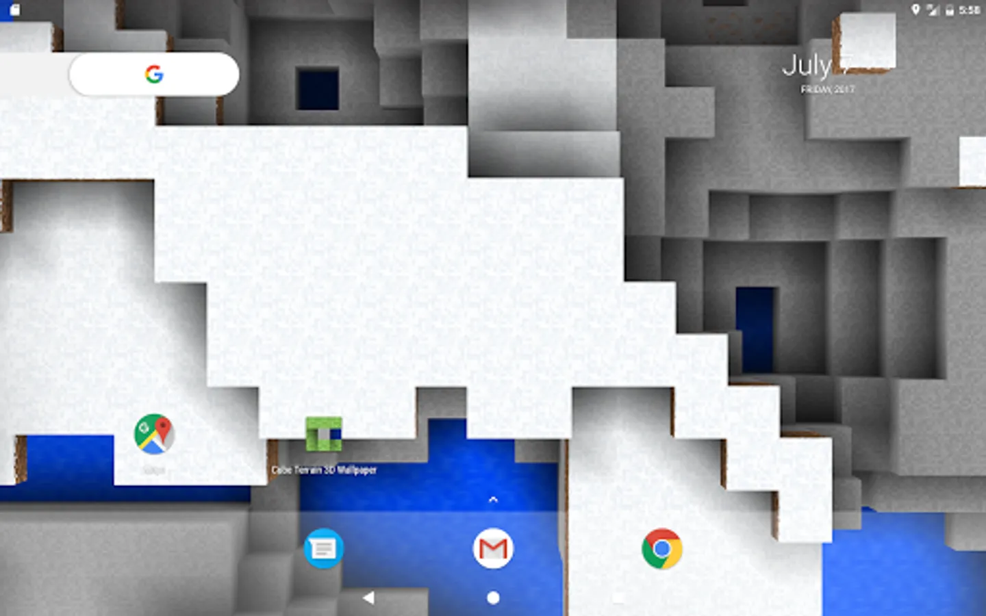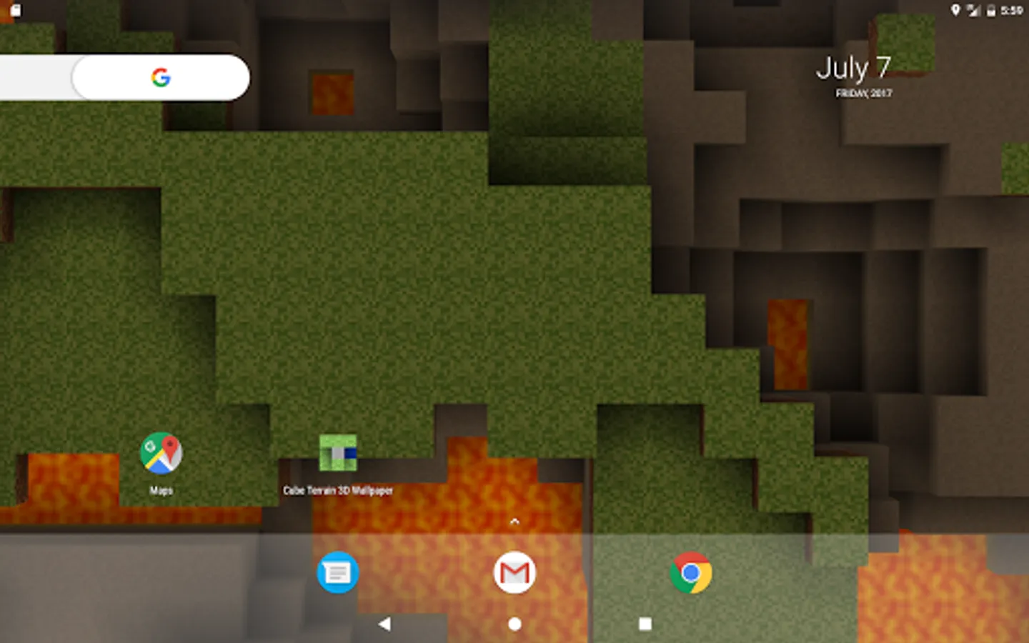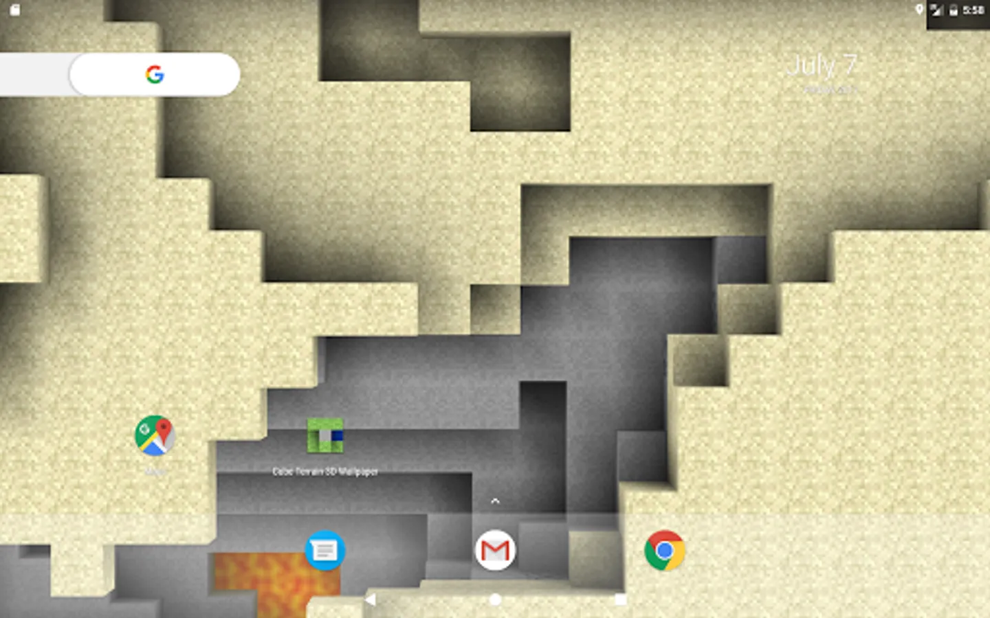 A computer-generated landscape inspired by the popular exploring and crafting game. Explore as you swipe through your home screens and see the depths of the caverns as you tilt.