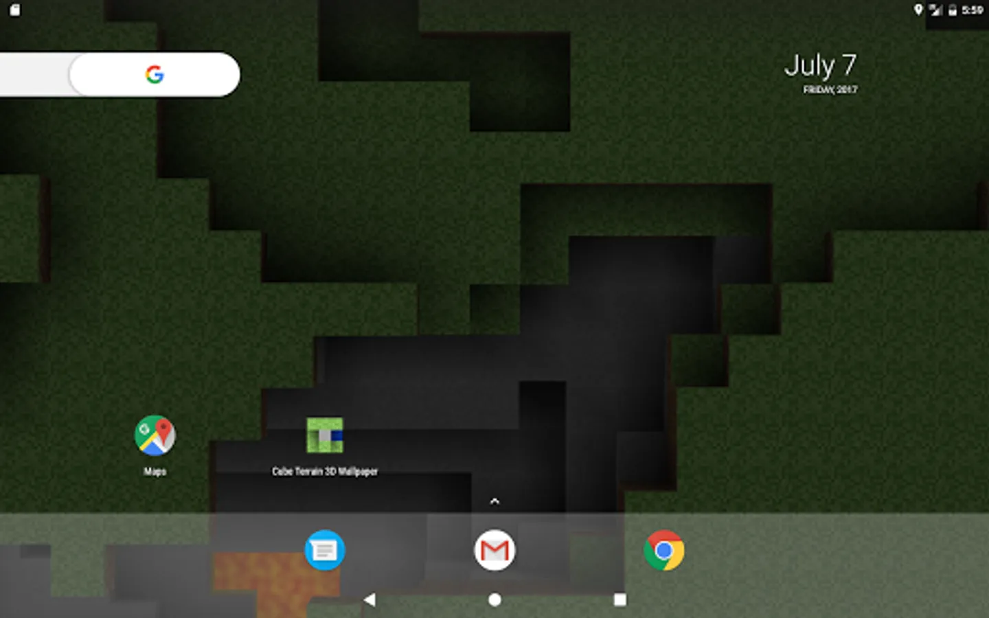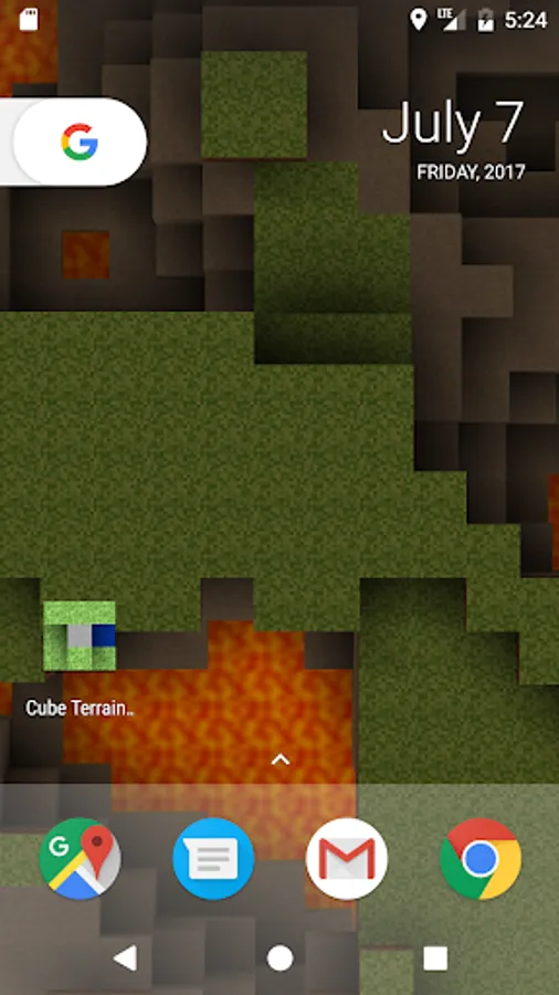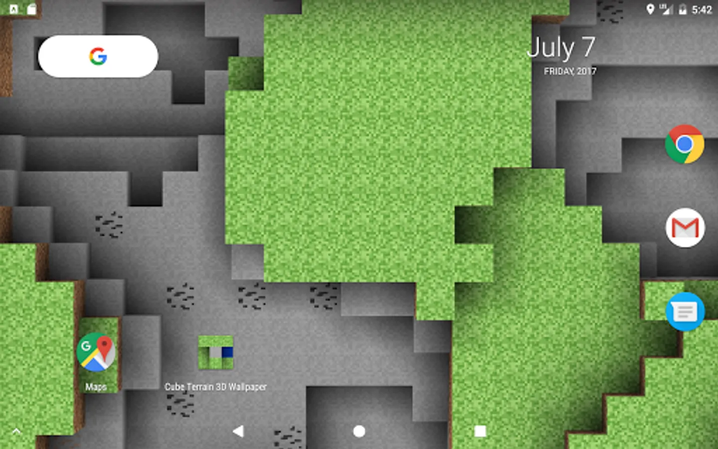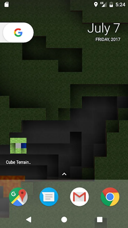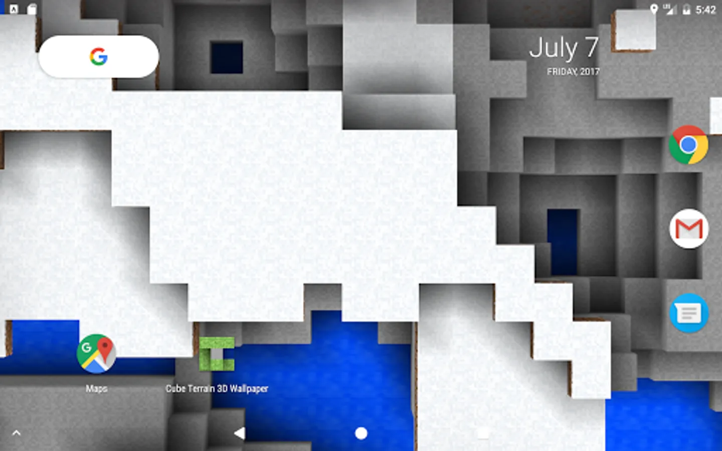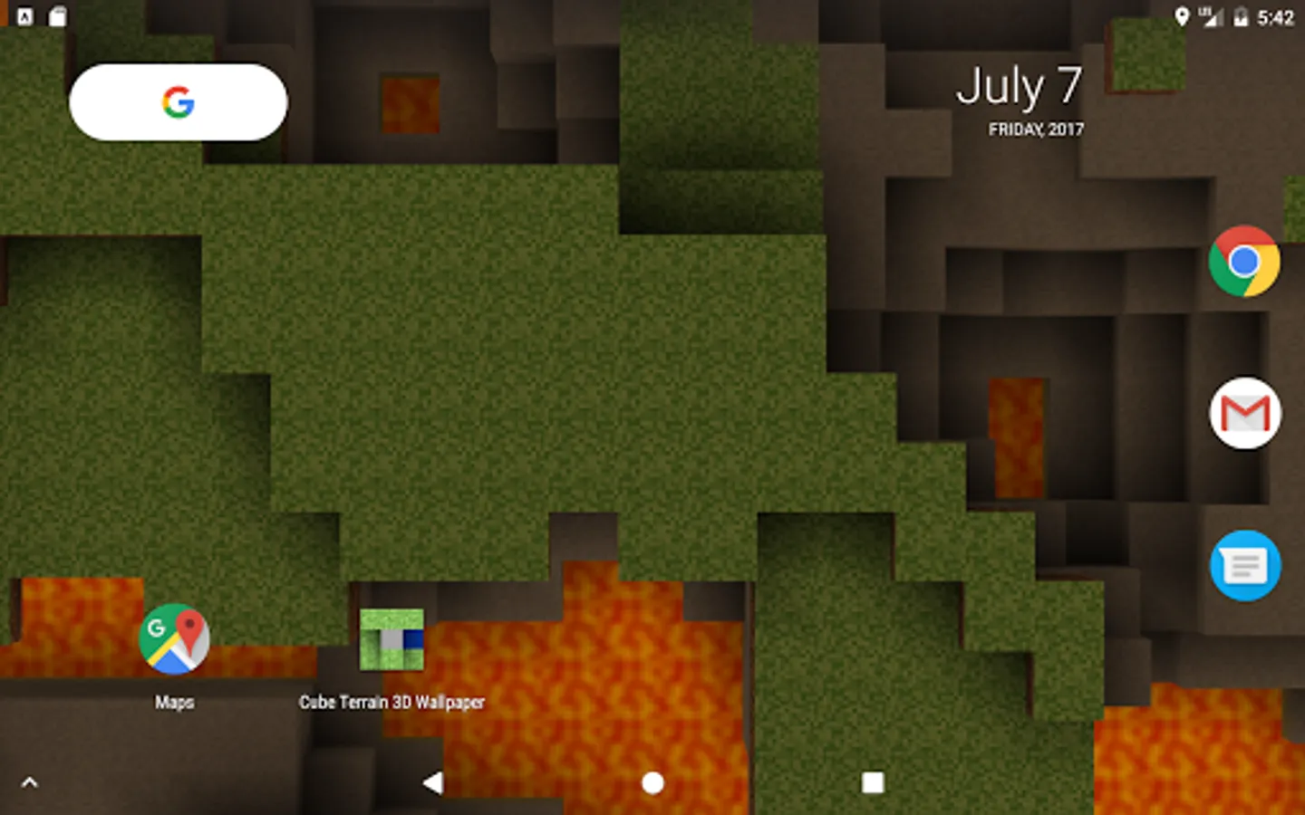 A computer-generated landscape inspired by the popular exploring and crafting game. Explore as you swipe through your home screens and see the depths of the caverns as you tilt.