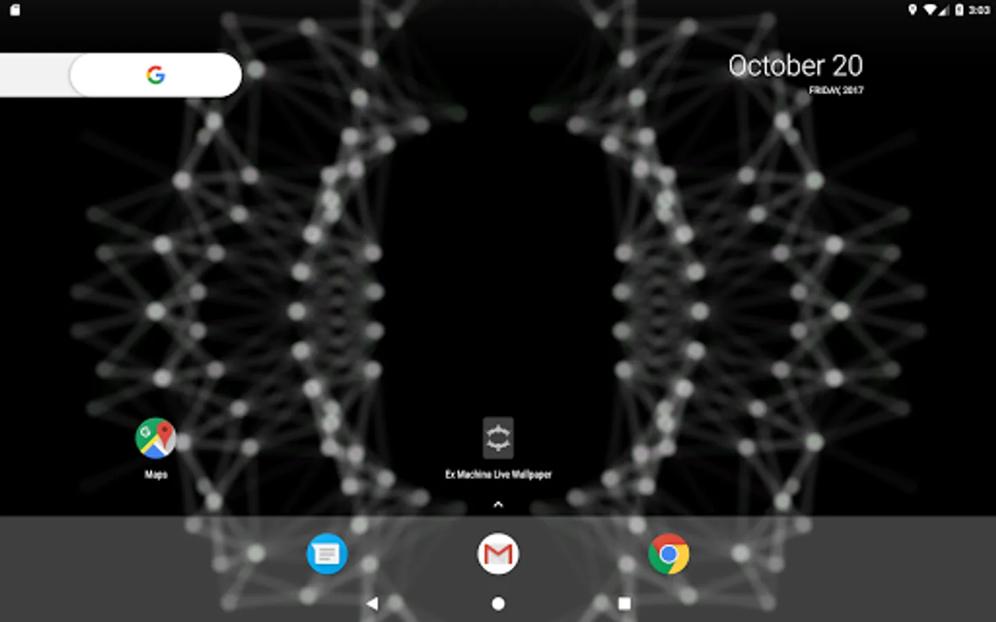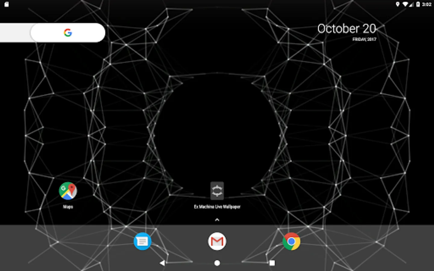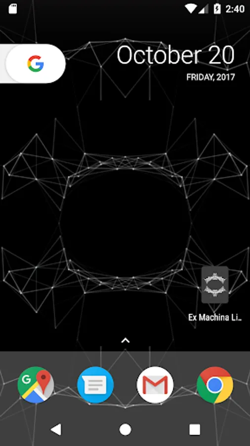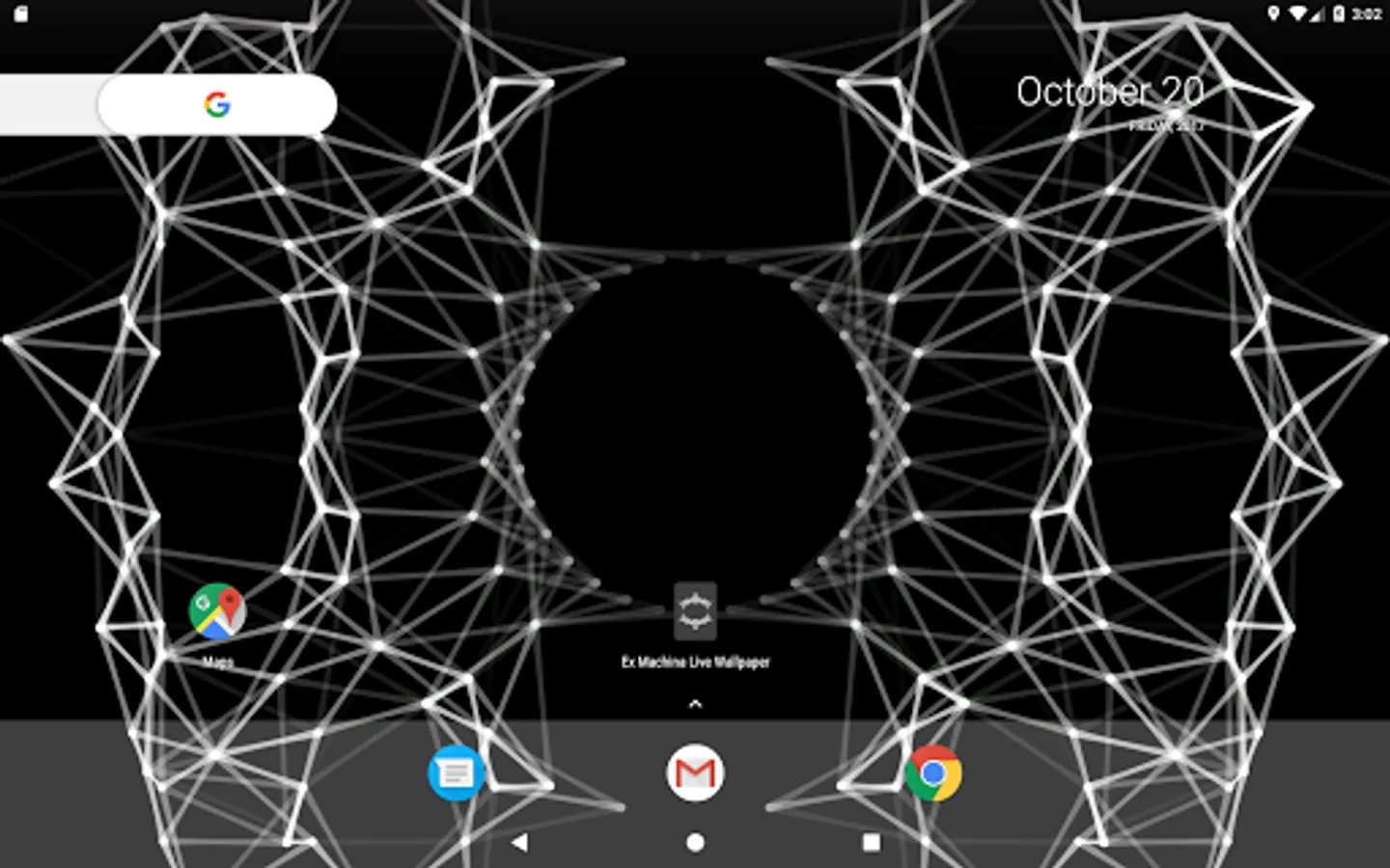 A live wallpaper inspired by the end credits animation of the Alex Garland film, Ex Machina. Touch the screen to create ripples of points that interact with the mesh. Tilt for a 3D parallax depth effect*.