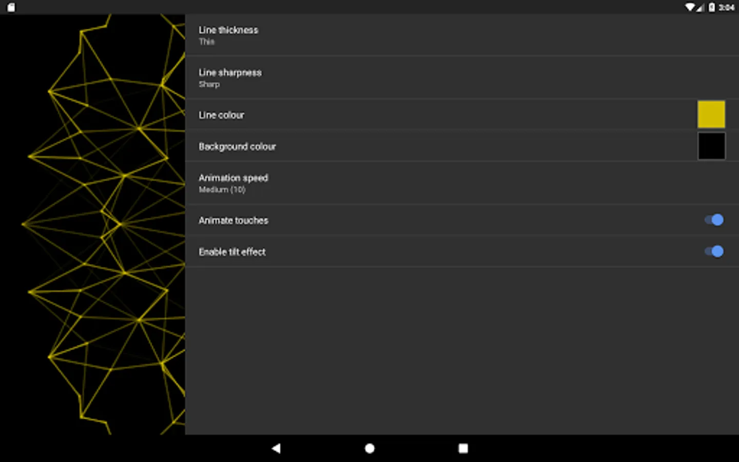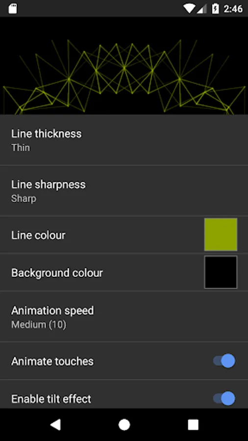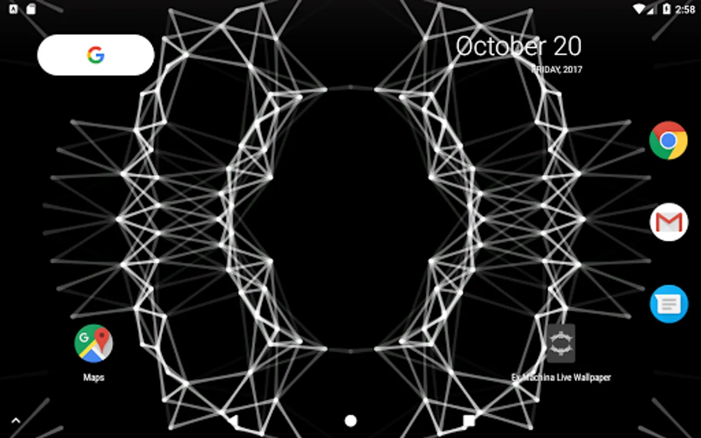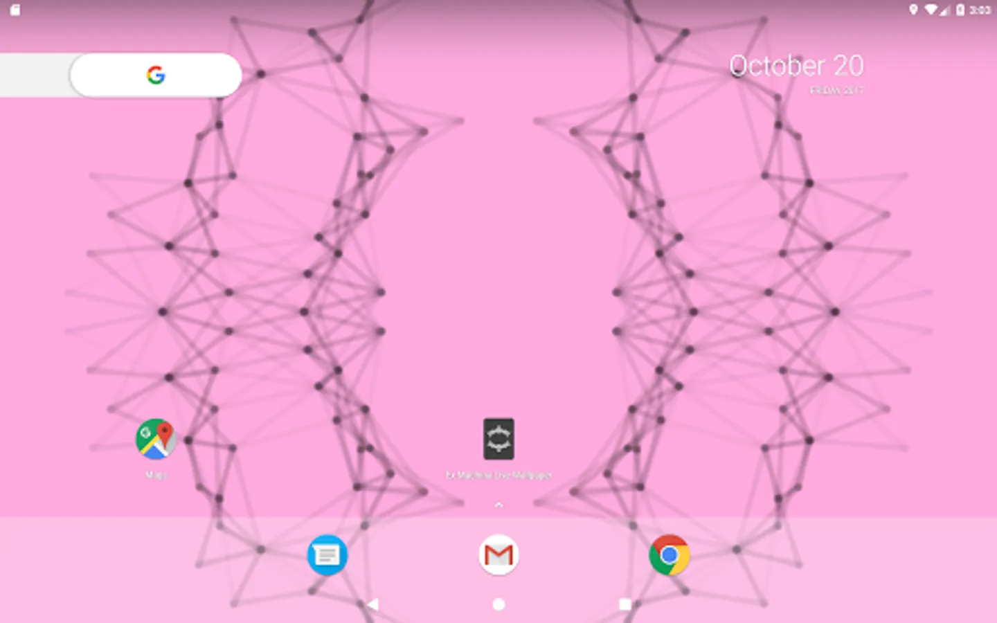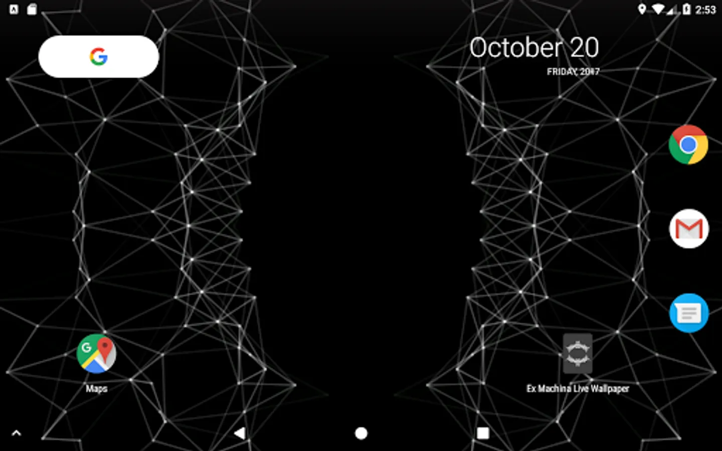 A live wallpaper inspired by the end credits animation of the Alex Garland film, Ex Machina. Touch the screen to create ripples of points that interact with the mesh. Tilt for a 3D parallax depth effect*.