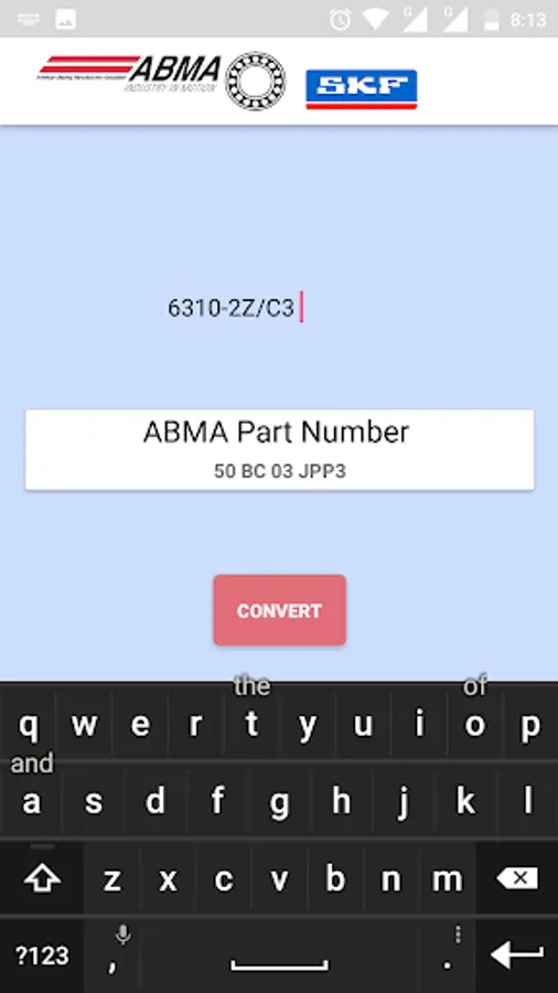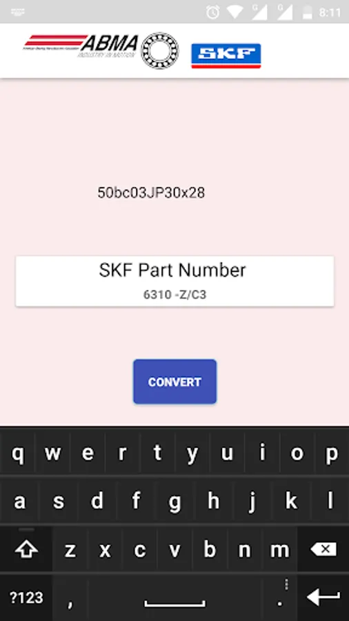 This app is designed to help you convert ABMA (American Bearing Manufacturer’s Association) Part Numbers into SKF Numbers.