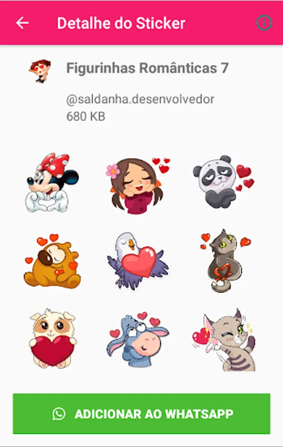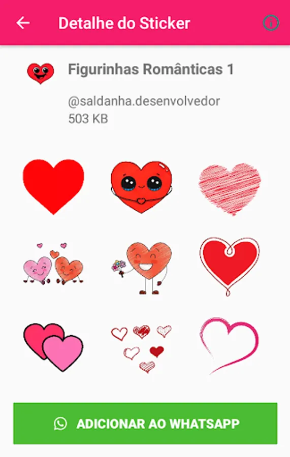 In this App you will find several romantic, love stickers with hearts, drawings and illustrations for you to send to your loved one!