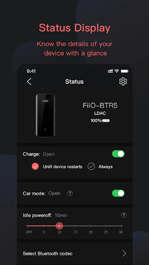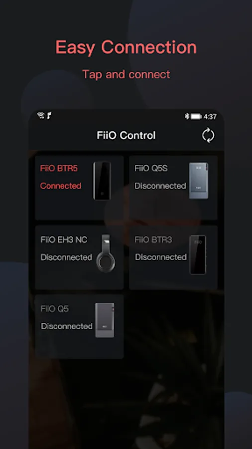 Note: This app currently supports connecting with FiiO Q5, Q5s, BTR3, BTR3K, BTR5, EH3 NC, LC-BT2. The support for newer models will be added once they're available.