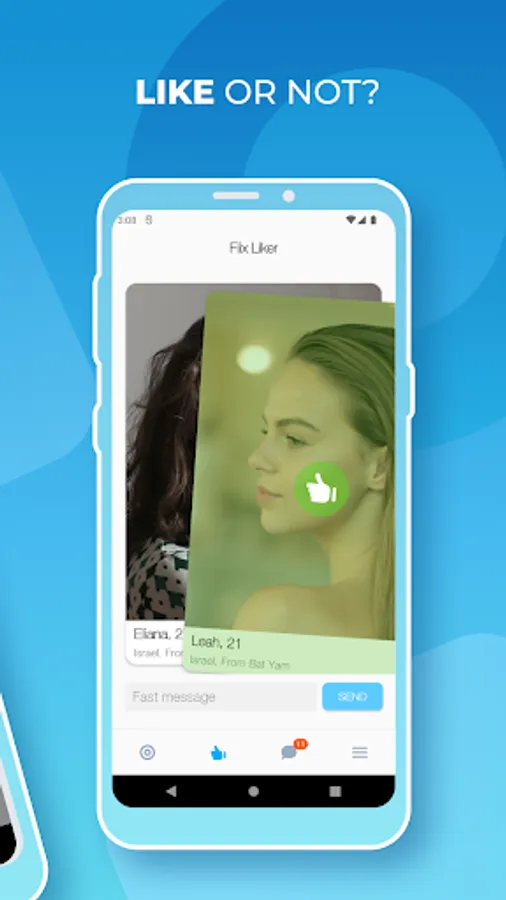 In Fiix, you don’t need to wait until she/he will like you. If you Like her, she’ll know you liked her and she can like you back or start chatting with you. And you don’t even have to Like. You can start chatting right away! Being a mobile-only app, the other party is always online and you will receive a fast reply.