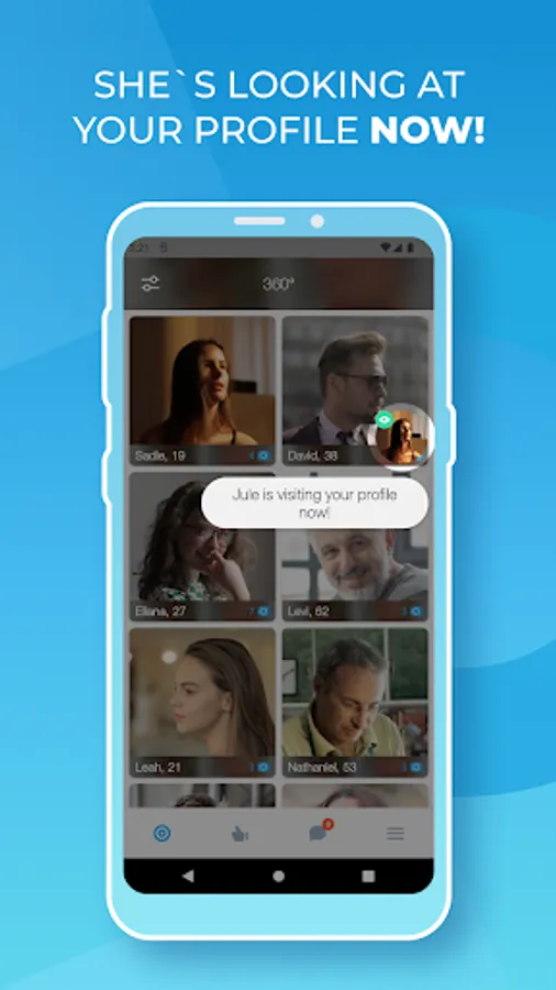 Use the 360* to find people based on their distance from you, or use the “Like” to see people that we think are good for you.