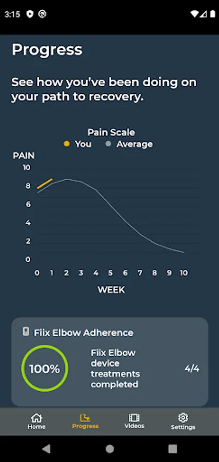 If you like data, you’ll love how the app tracks your progress so you can see how you’re doing every step of the way. You get scores each week measuring your adherence to the therapy program so you can celebrate your success. Plus, assess your pain with the weekly survey, and check out the graph that shows how you compare to others throughout the 10-week program.