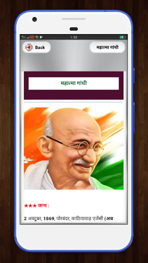 If this app is in your phone, you may need to download an indian leaders wallpaper app, but never need a indian leaders history app or carry a hindi biography book.