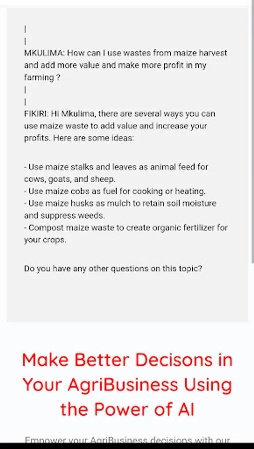 Empower your AgriBusiness decisions with our Artificial Intelligence platform. Optimize crop, animal, bee & fish farming practices, prevent diseases & efficiently solve farm problems. Boost productivity with fast, affordable & reliable intelligent support.