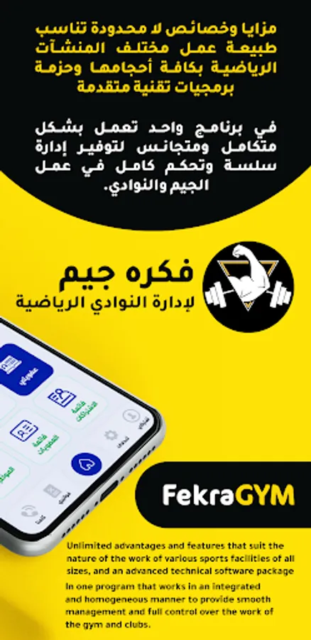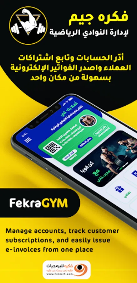 The FekraGYM Management Program for gymnasiums and sports clubs, is a cloud integrated paid system that works online Cloud-Based ERP Sports aims to facilitate the process of following your customers professionally, It saves you effort and time in tracking their subscriptions and the ease of issuing their bills and effectively manage their purchases of products and supplements and their movement in your inventory, Also, you will be able with the idea of Jim to follow up and manage your staff of trainers, sales, marketing and other officials and integrated management of e-gate devices of the type.