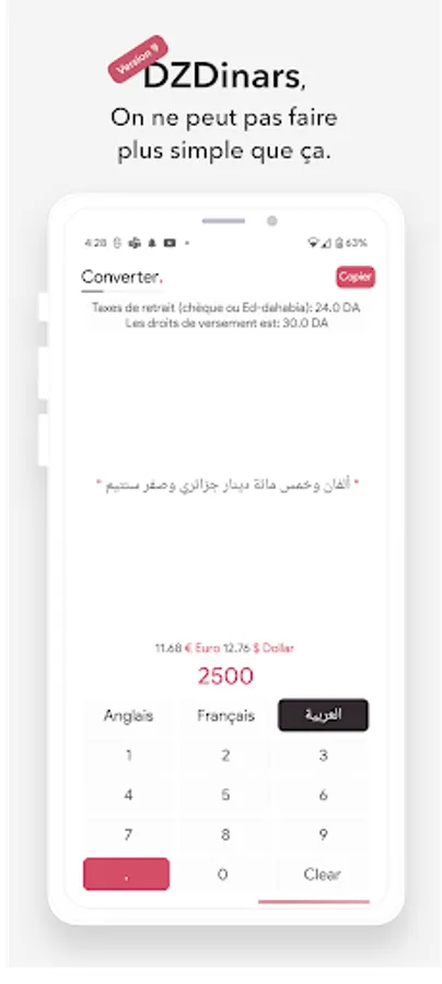 • write the number in words (cent, dinar, thousand dinars or million cents) in words therefore any bank or postal check.