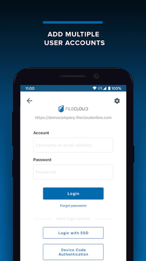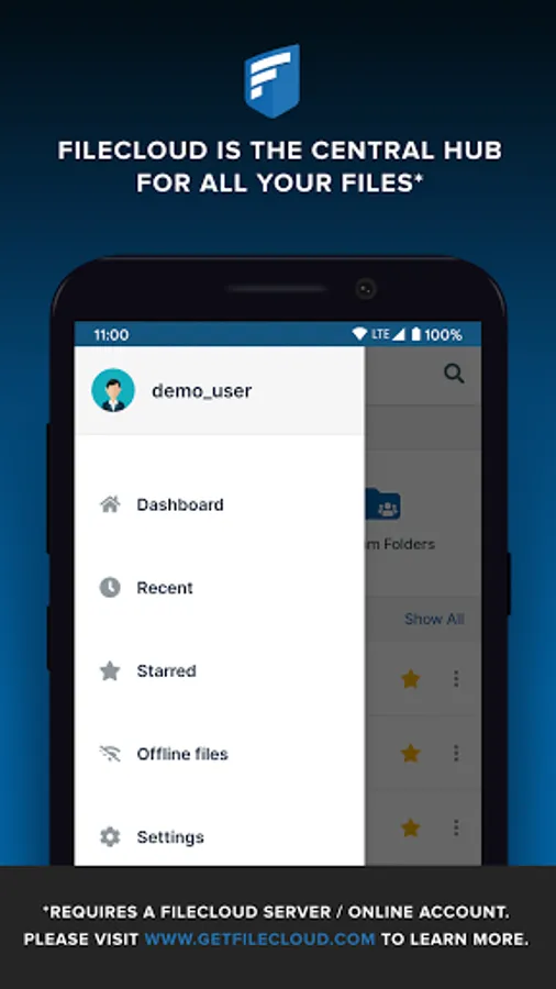 Note: This app requires a FileCloud server to function. Your company may have provided one to you. See the website (www.filecloud.com) for more information.