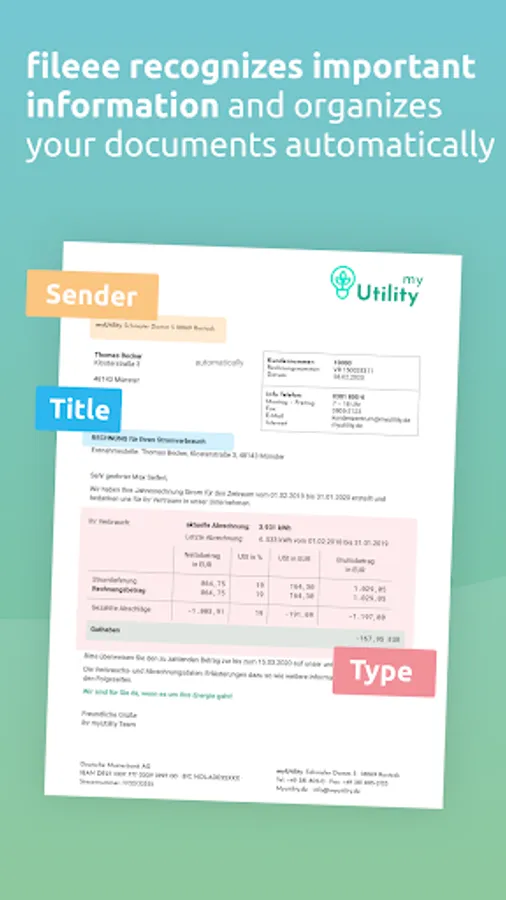 With fileee you can scan, organize and access your documents anywhere, anytime. fileee analyzes your documents, automatically recognizes important content and sorts your documents accordingly. Thanks to fileee, you always have your documents at hand and can find what you need in a matter of seconds.