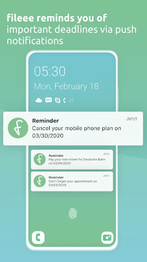 REMIND - fileee reminds you of upcoming deadlines, such as payment terms.