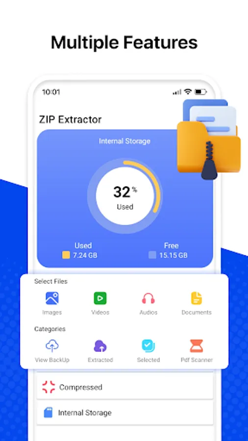 File extractor: Zip unzip, file zipper app is an amazing zip extractor that reduces the size of files such as images, documents and quickly compress them that eventually save space in smartphones.