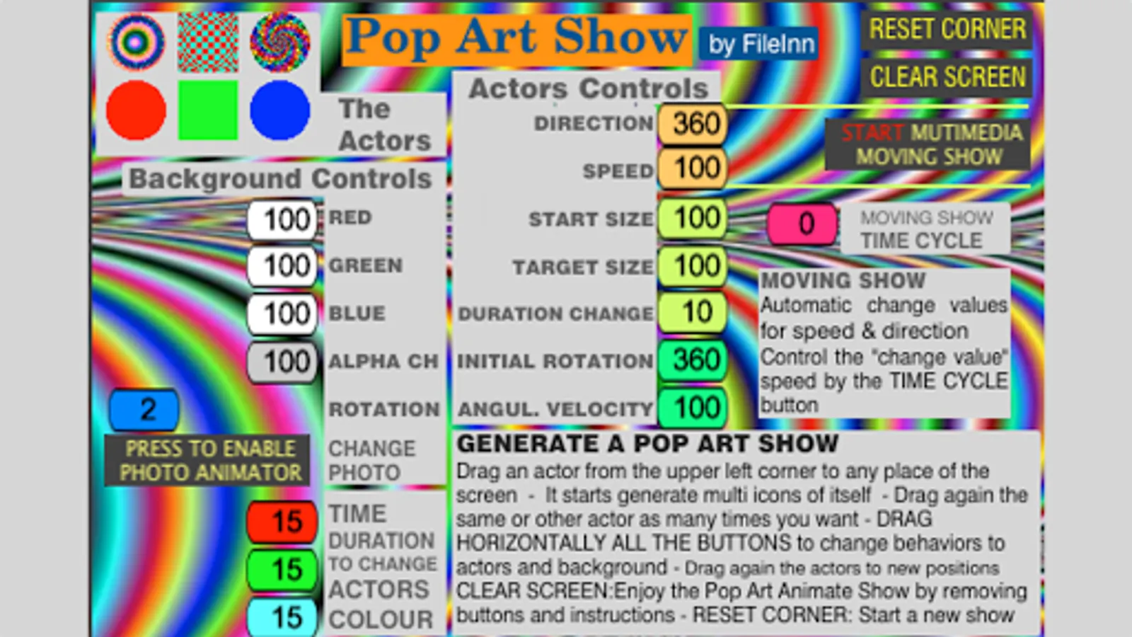 a smart tool to create your animated pictures - unique software to Generate your own animated Pop Art Shows