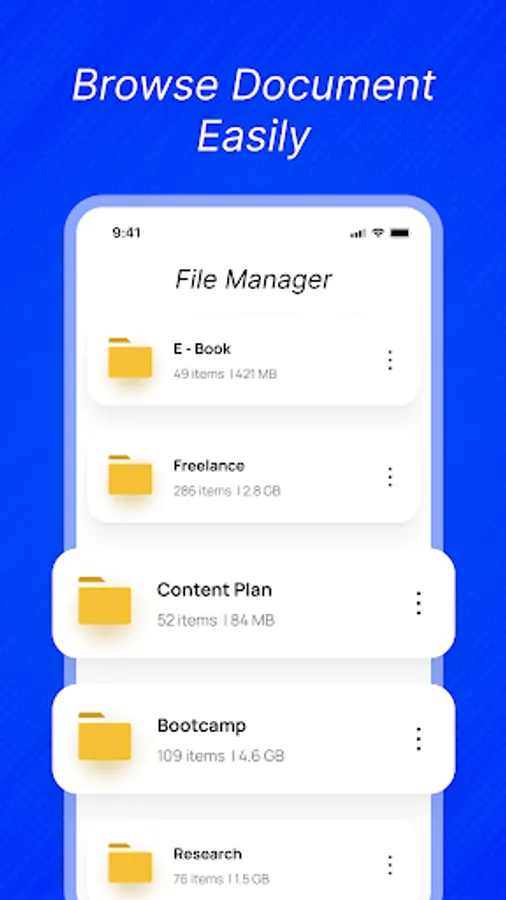 Tired of searching through a cluttered mess of files on your device? Our file explorer app offers a comprehensive file management system that allows you to organize, categorize, and locate your files with ease. You can create custom folders, rename files, and sort documents based on your preferences. Whether it's documents, images, videos, or music, you'll have everything neatly arranged at your fingertips. Need to find that important PDF for your upcoming meeting? No problem – our app's powerful search feature ensures you can locate any file in seconds.