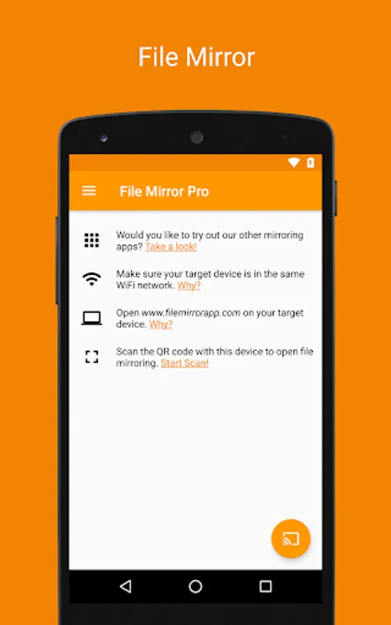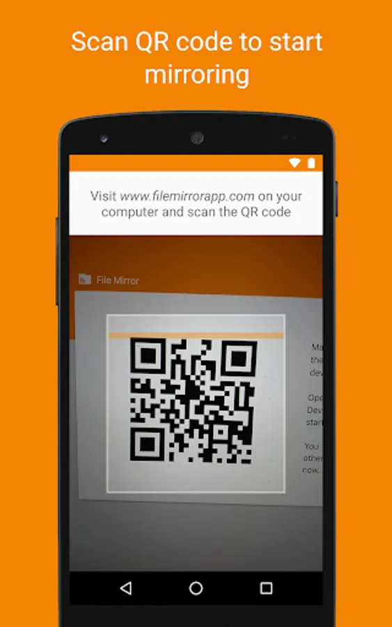 So just open http://www.filemirrorapp.com on your remote device, start the file transfer process on your Android device, scan the QR code and the file transfer starts immediately. As simple as that. No additional software on your target device is needed.
