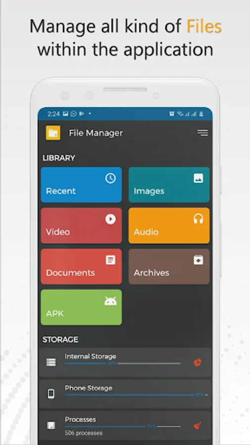 you can handle all your files and folders, which stored in your internal storage and external storage.