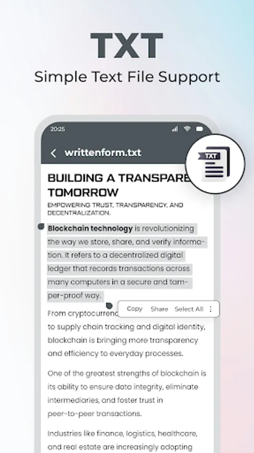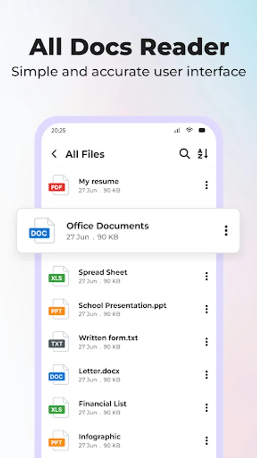All Documents Reader is the ultimate all-in-one file viewer that supports PDF, Word (DOC/DOCX), Excel (XLS/XLSX), PowerPoint (PPT/PPTX), and Text (TXT) files.