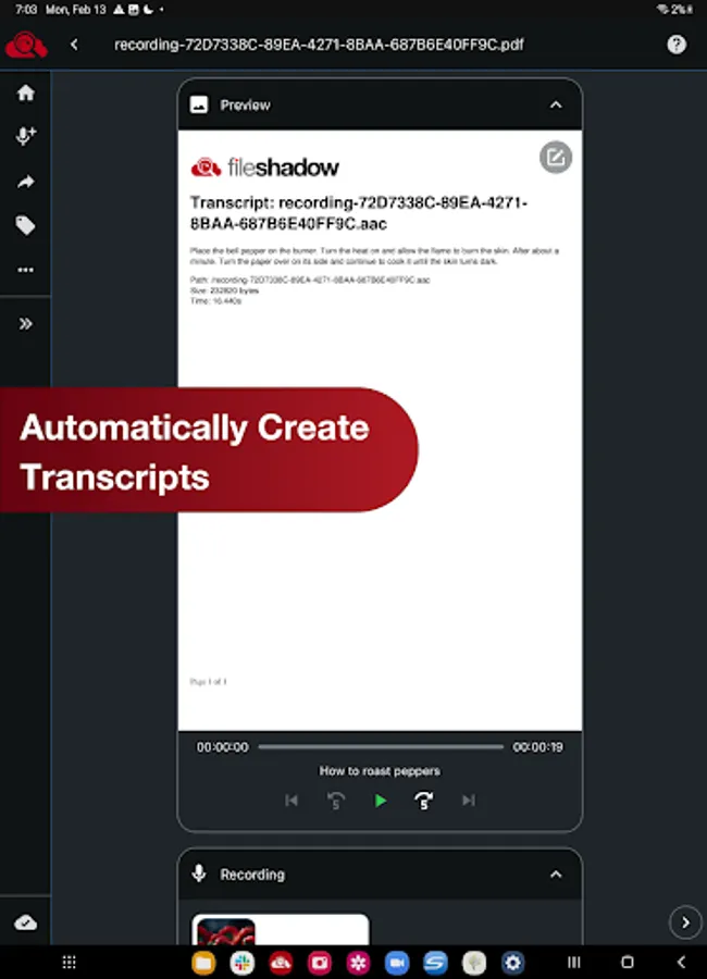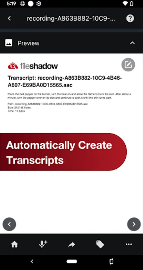 FileShadow is a streamlined, fully customizable organizational tool for your photos and files. Give greater context and information to your photos and files by recording and attaching voice memos. Easily add or redo multiple recordings and the resulting audio is saved and linked to your file. FileShadow will even make transcripts of your recordings for you, making the voice memo searchable. Written annotations are also available by clicking and typing in the description box.
