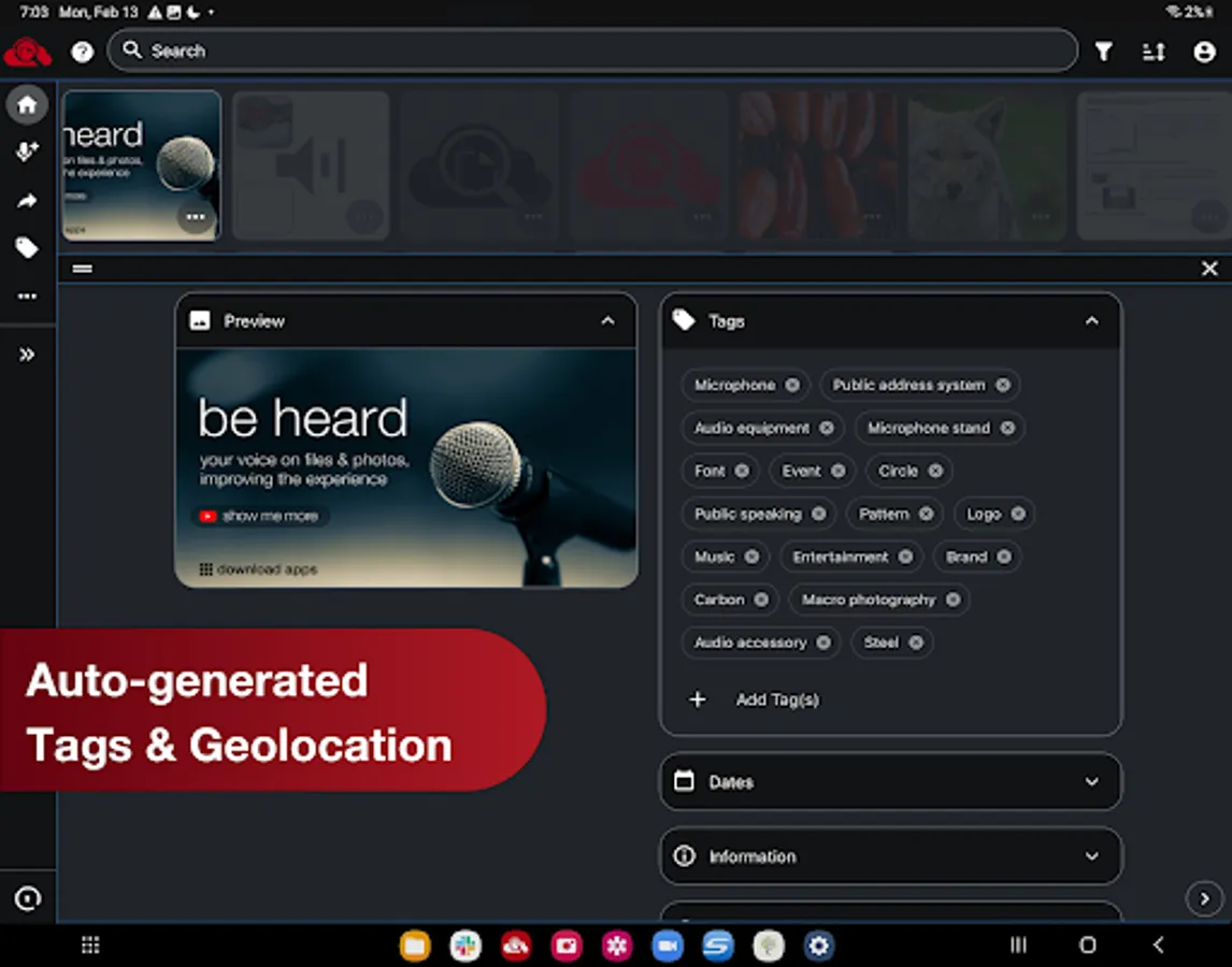 While FileShadow generates tags immediately, these tags are customizable and come with the ability to bulk tag as well. Users can easily search and filter using keywords, dates, location, original source, and file type. File location and upload, edit, and retrieval dates are all saved; users may also edit these details.