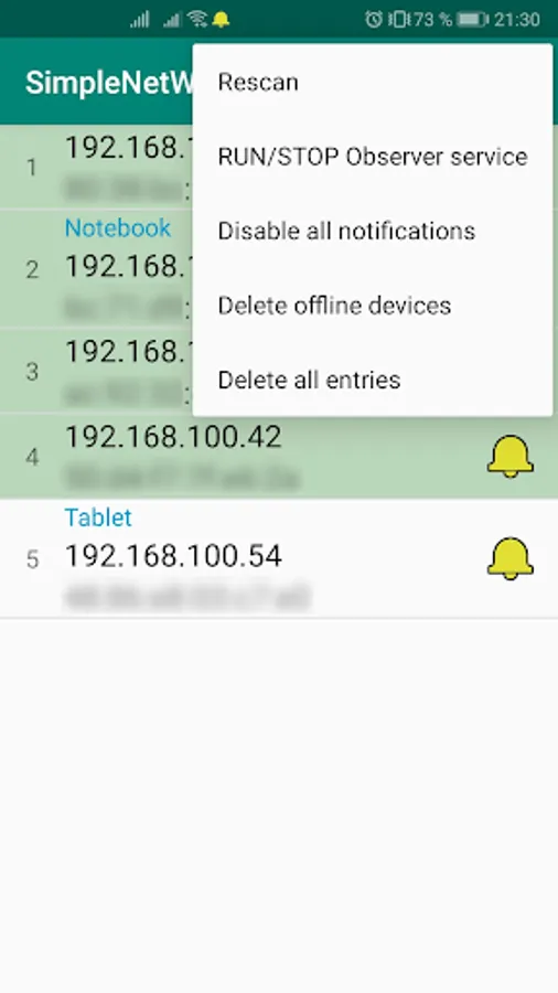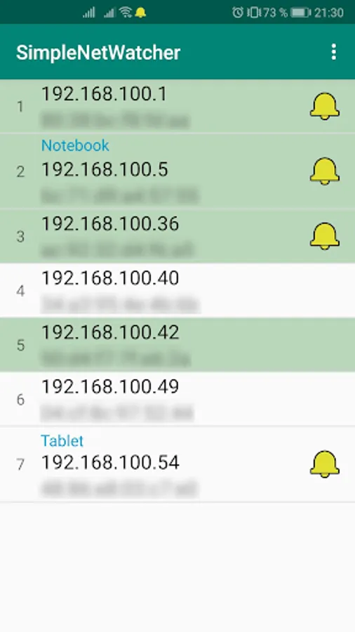 Application for scanning WiFi network devices and monitoring their availability.