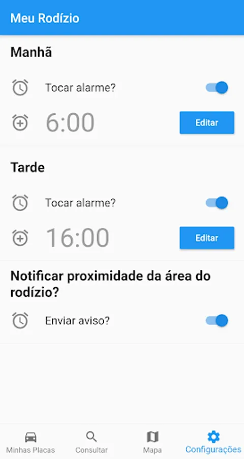 The Meu Rodízio app helps you remember your car's rotation day in São Paulo.