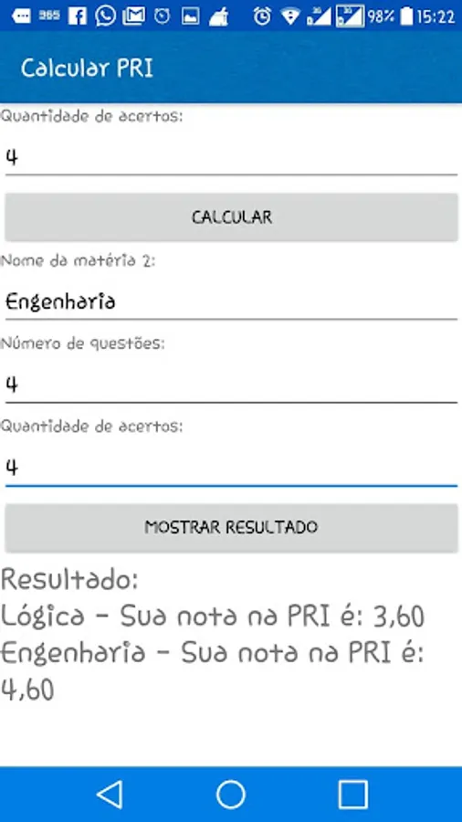 Simple but very useful application was developed by a student of the UDF with the purpose of facilitating the calculation of the PRI, which was usually something complicated mainly for freshmen, also counts on a calculator of notes.