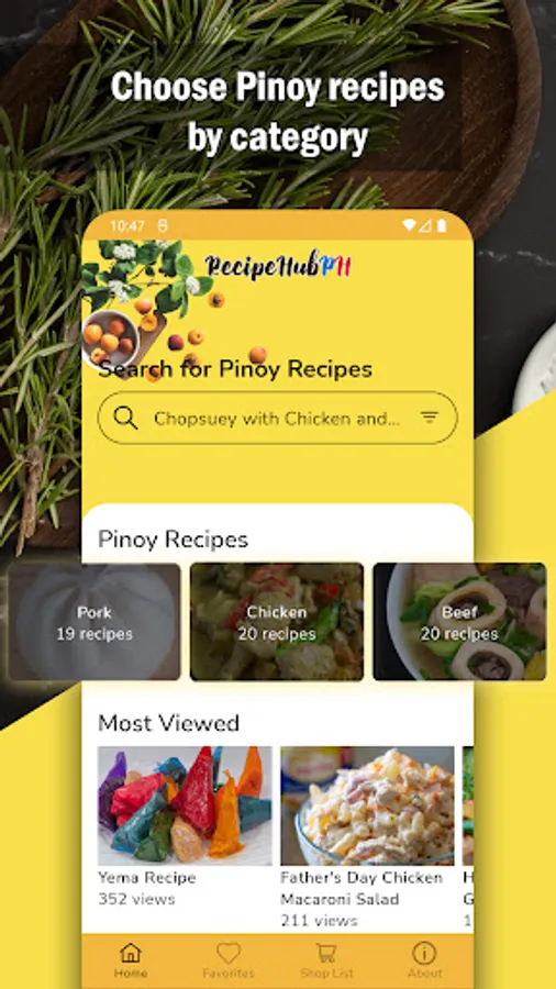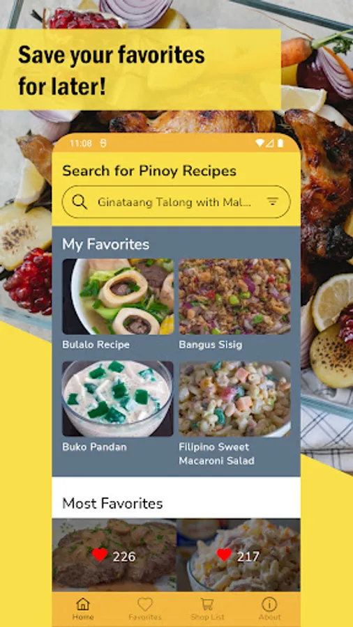 🟡 Filipino recipes offline - Works great outdoors where WiFi is not around. You can still search and read Filipino recipes offline!