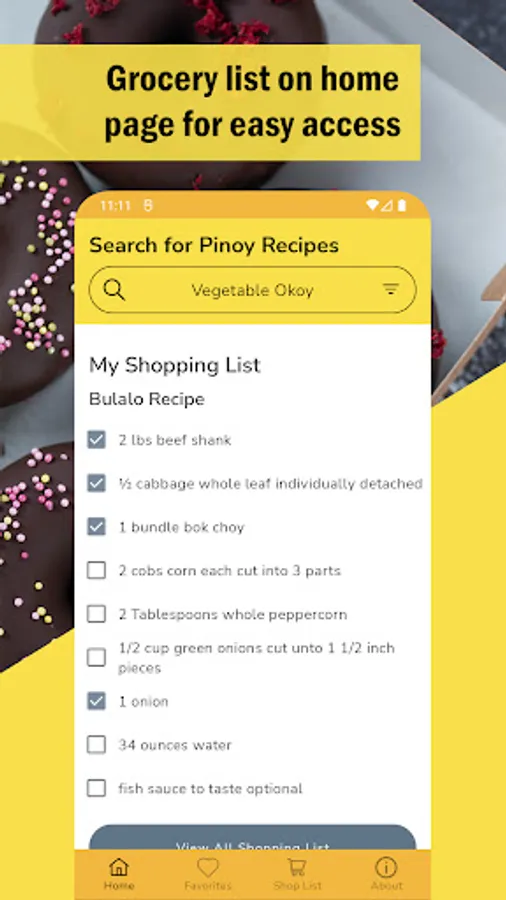 🟡 Grocery management - You can't cook Filipino recipes for chicken and the likes if you don't have ingredients. So we created a feature that helps users to manage grocery lists and it works just like a todo app.