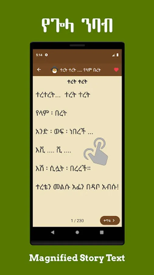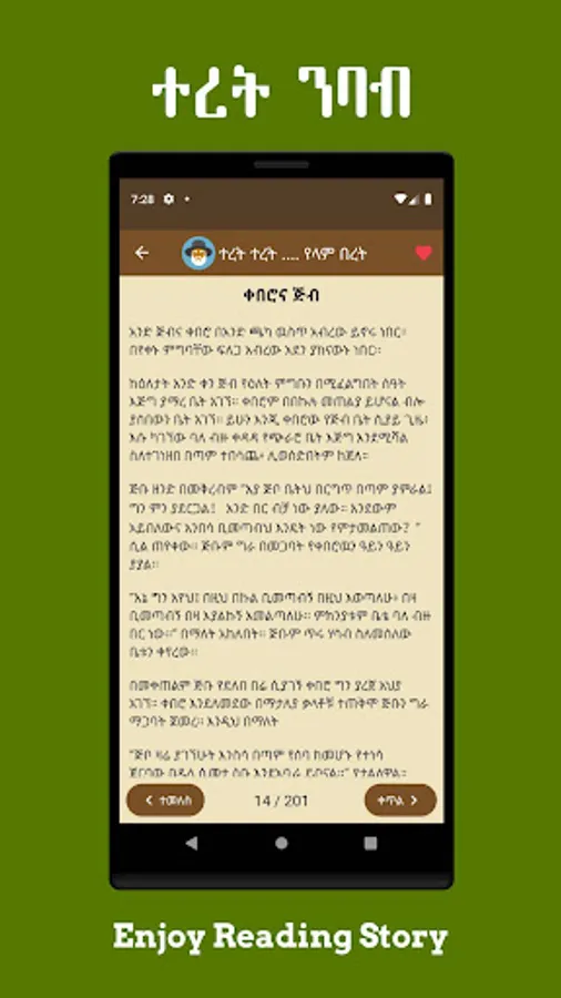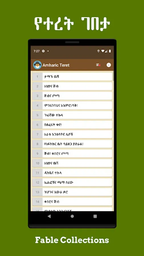 The App lets you browse plenty of Amharic fables that you can explore and create your own favourite collection to read again later.