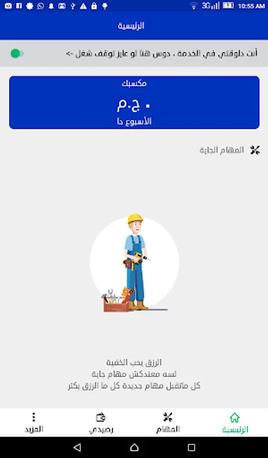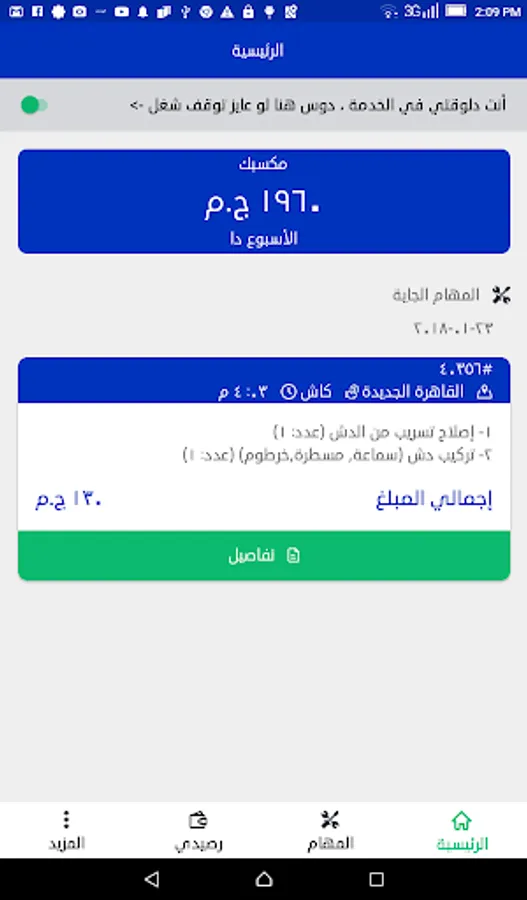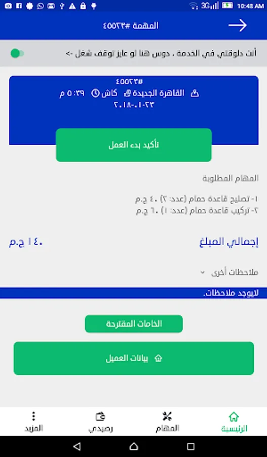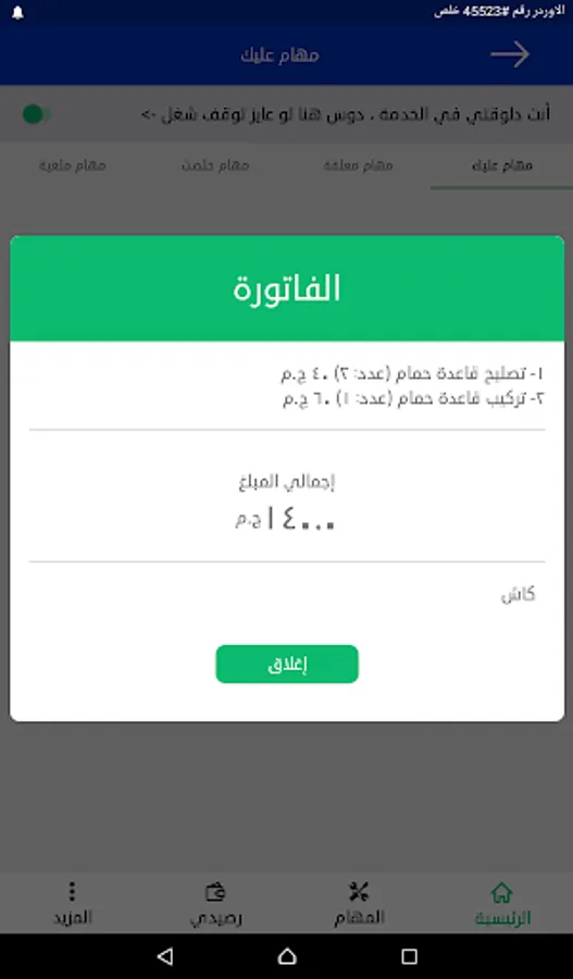 - بعد الشغل بتحصل من العميل كاش حسب المبلغ المكتوب على الأبليكاشن.