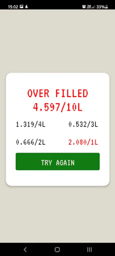 There are 4L, 3L, 2L and 1L. Refill each bottle, but do not exceed the limit. Try to fill in exactly 10 liters