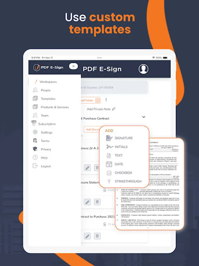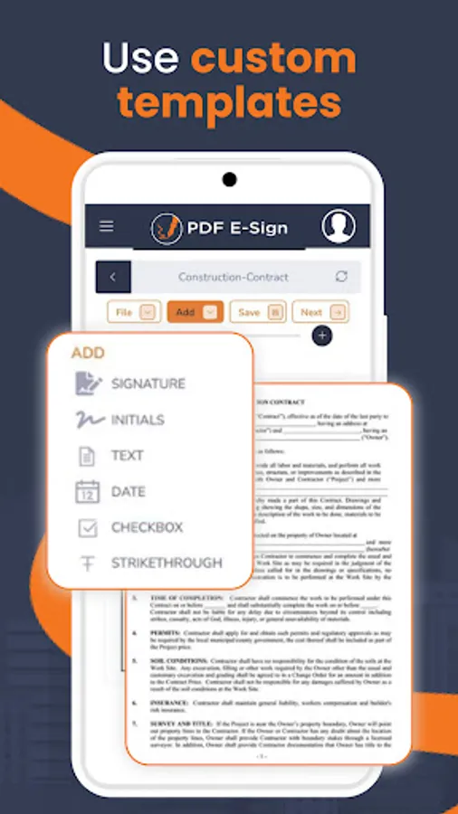 Create, customize, and sign contracts effortlessly from anywhere with our user-friendly document editor and PDF fill & sign functionality. Say goodbye to the limitations of traditional e-signature tools; PDF E-Sign, the document signer app, empowers you to be productive on the go, ensuring your documents are not just signed but seamlessly created and managed, all from the palm of your hand. Turn your mobile device into a powerful tool to sign PDF documents effortlessly.