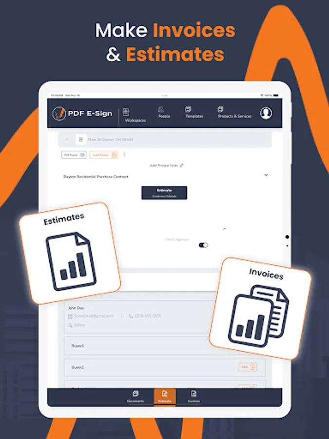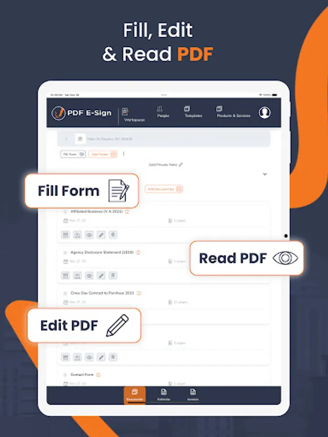 Unleash the full potential of e-signing with our PDF E-Sign app. Our e-signature app empowers you to sign PDF documents seamlessly, anytime, anywhere. Create entire contracts, estimates, and invoices directly from your mobile device with minimal data entry. PDF E-Sign app puts the power of comprehensive document creation and signing in your hands, giving you unparalleled flexibility in managing your professional documents. Sign PDF documents, seal, and deliver contracts with ease using our PDF fill & sign functionality.