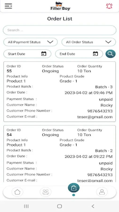 Sales management: Employees can travel and acquire new Fillerboy customers through the app. They can also order products and customize orders on behalf of the customers to ensure seamless product delivery.