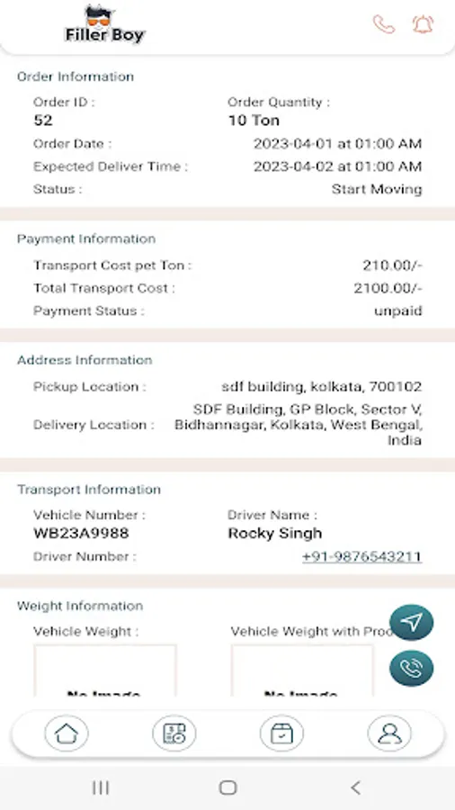 Upload transportation bills: With our app, vehicle owners can upload transportation bills against the order, streamlining the billing process and ensuring accurate payment.