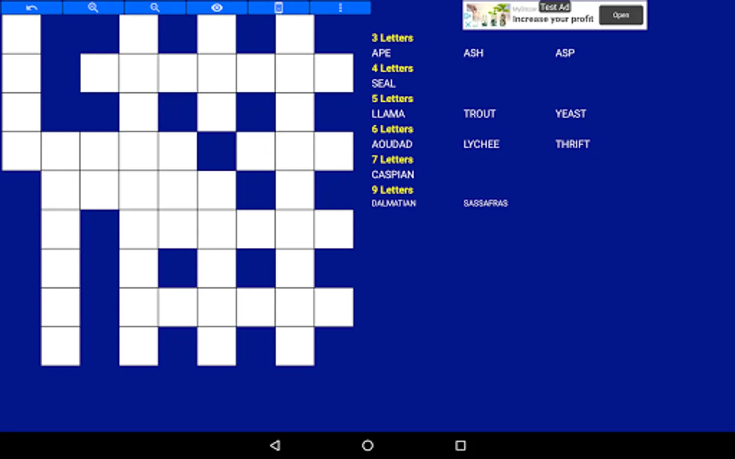 For much more word puzzle games, like word searches, english Crosswords, fillin number puzzles, but also Cross Figures puzzles, please check the app store.