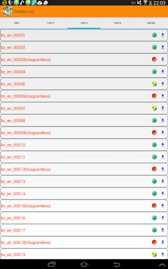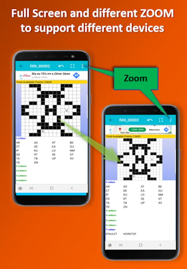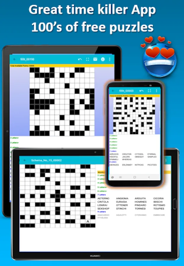 - Four different puzzles formats: 9x9, 11x11,13x13,15x15