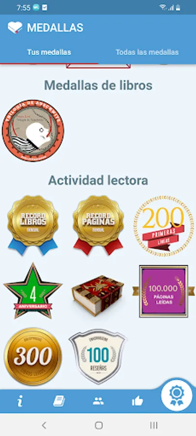 Bibliophagous allows you to keep track of all the books you read or plan to read and set personal or shared reading challenges with friends or other readers. These challenges motivate you to improve your reading experience. It also offers you statistics on your activity as a reader, as well as earning virtual medals from readers' favorite authors.