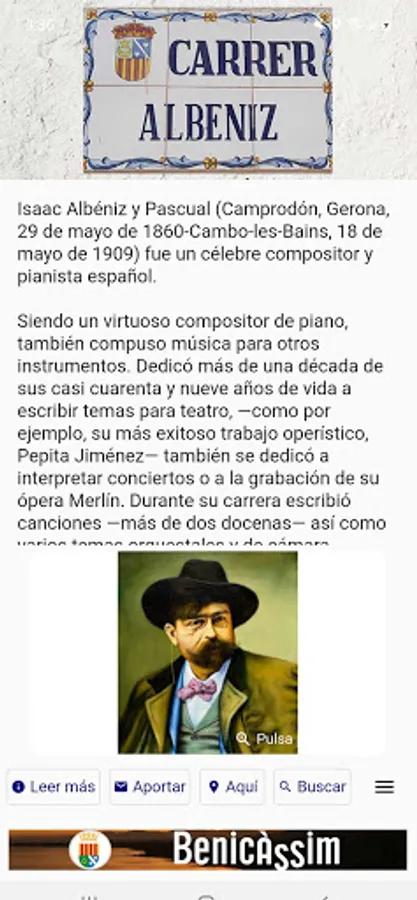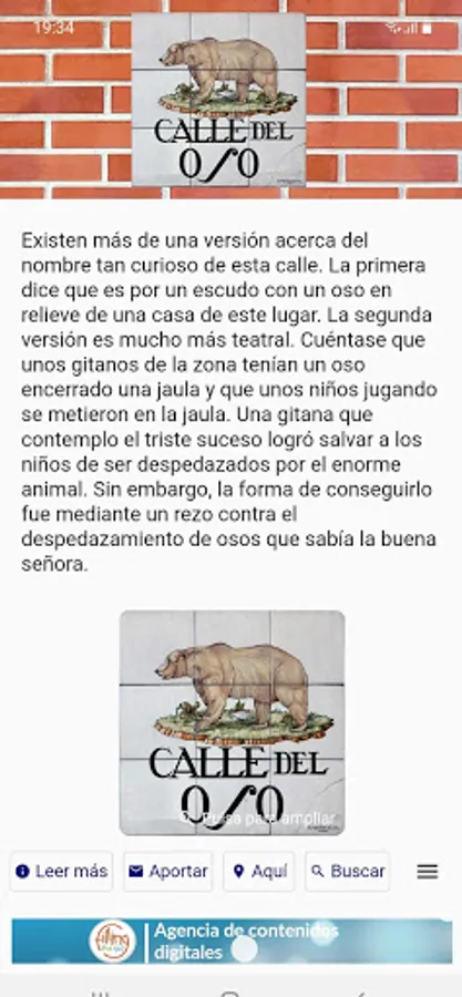 The app geolocates the user when opening it, allowing the user to identify the street they are on and showing its history. You can also search for a specific street in any town hall in Spain.