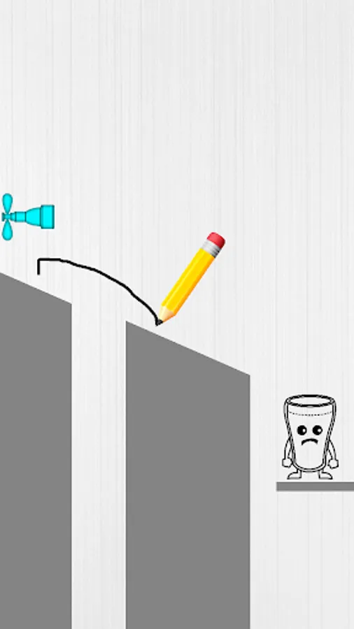 The glass is sad because it's empty. Your job is to draw a line to make the glass filled up with liquid and smile again!