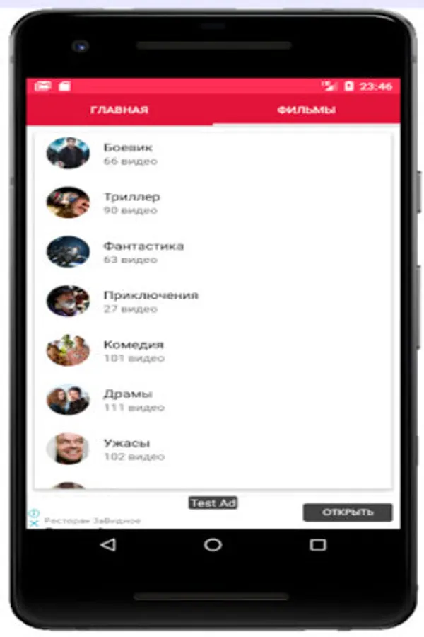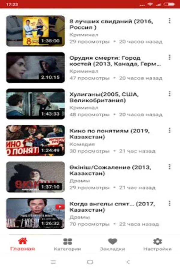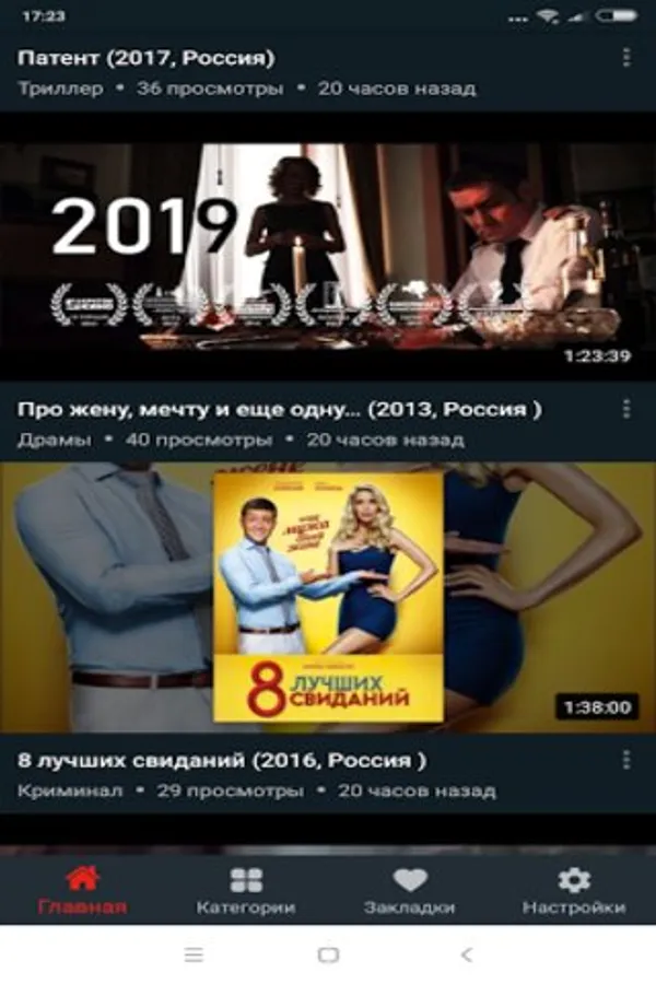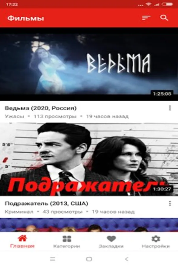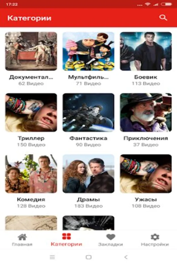 All movies, movies, cartoons online in the application are conveniently divided by genre. There are action movies for every taste, thrillers, dramas, comedies and other genres.