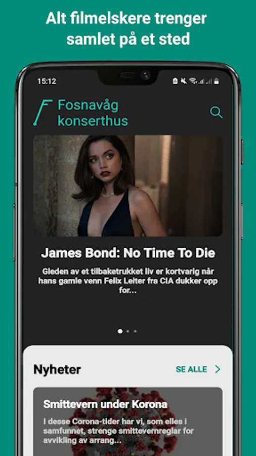 These are just some of the features you will find in the first version of the Fosnavåg Concert Hall cinema app: