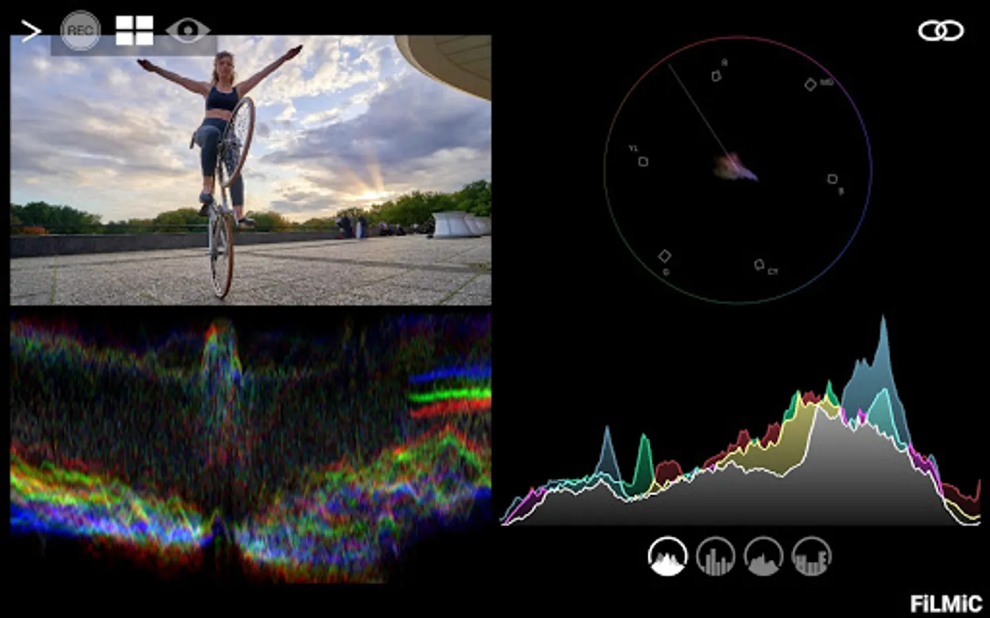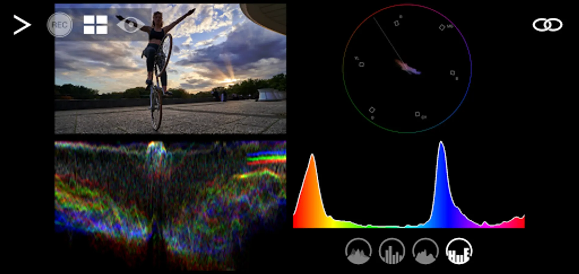 You can switch between modes on the fly to check analytics and composition. Remote can also be set up in ‘preview-only’ mode allowing a camera operator to perform all controls from the device running Filmic Pro and allowing the Remote to be used solely for monitoring.